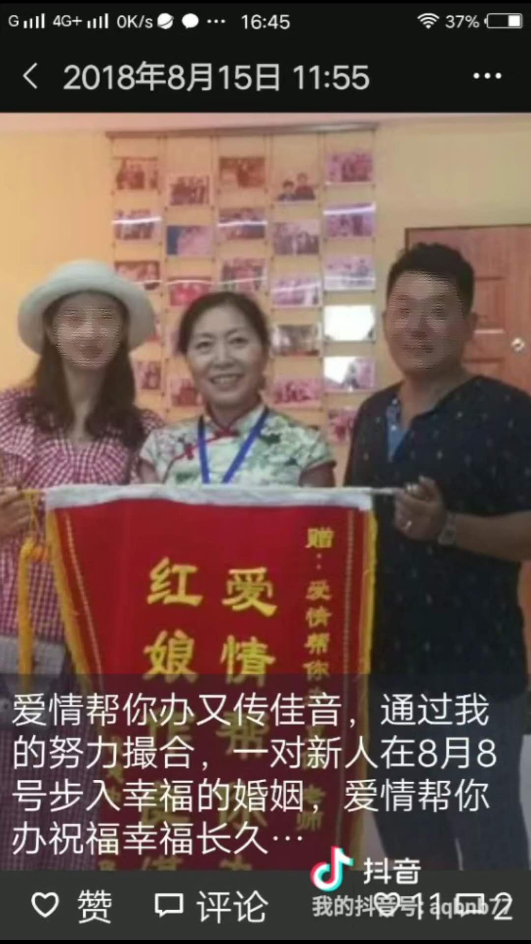 2、成功案例:在一次公园做宣传活动中,有一位阿姨走过来,看她满脸踌躇,于是我主动上前询问、了解情况,阿姨说,帮帮我女儿,我女儿离婚了,我说,阿姨别着急,我们一块儿努力。第二天,阿姨和女儿一起来到了爱情帮你办,根据女孩儿的情况,了解了很多,并就此做了一套方案。王女士32岁,张先生35岁,第一次见面,王女士迟到了二十分钟,男士非常不满,男士抱怨道:这位女士的时间观念太差。男士是位大夫,说自己在工作中救死扶伤差一分钟都不行,王女士迟到是因为堵车,第一次见面十分钟不到就结束了,我跟踪回访,详细了解情况后,并做足了工作,0.5+0.5=1,只有把对方的脾气各去一半才能组成一个圆满的家,要理解对方才会得到更多的幸福,两个人就像两个银行,相互给予相互支持,就这样在我的疏通下,给彼此一个机会,两人有约见了一次,这次经过沟通,双方都有一种相见恨晚的感觉,从相识相知相恋,半年后,俩人最终走进了美满的婚姻殿堂。