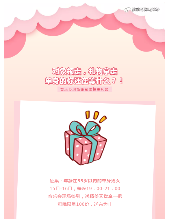 4、 活动前夕可准备好一份小礼物,现场赠送给心仪的TA